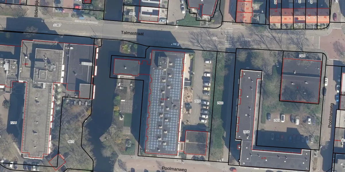 Het perceel waarop Talmastraat 83 staat heeft een oppervlakte van 2886 m². Dit is een zeer groot perceel. De perceeloppervlakte wordt geregistreerd door het Kadaster. Gedetailleerde informatie over de maten van dit perceel kunt u vinden in het rapport Kadastrale kaart met maatvoering van Talmastraat 83.