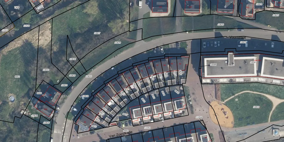 Het perceel waarop Voorstraat 71 staat heeft een oppervlakte van 103 m². Dit is een middelgroot perceel. De perceeloppervlakte wordt geregistreerd door het Kadaster. Gedetailleerde informatie over de maten van dit perceel kunt u vinden in het rapport Kadastrale kaart met maatvoering van Voorstraat 71.
