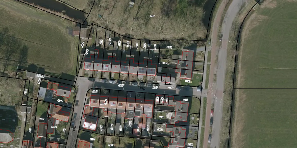 Gebruik de zoekbalk of klik op een perceel voor informatie over de adressen binnen dit perceel.