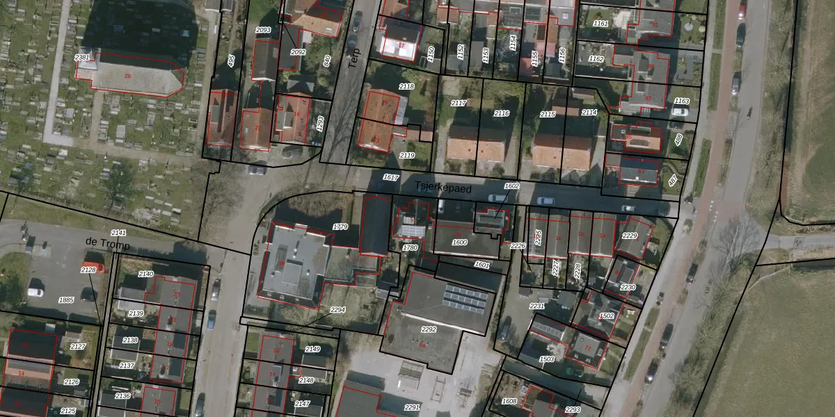 Het perceel waarop Tsjerkepaed 5 staat heeft een oppervlakte van 196 m². Dit is een middelgroot perceel. De perceeloppervlakte wordt geregistreerd door het Kadaster. Gedetailleerde informatie over de maten van dit perceel kunt u vinden in het rapport Kadastrale kaart met maatvoering van Tsjerkepaed 5.