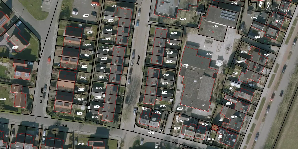 Gebruik de zoekbalk of klik op een perceel voor informatie over de adressen binnen dit perceel.
