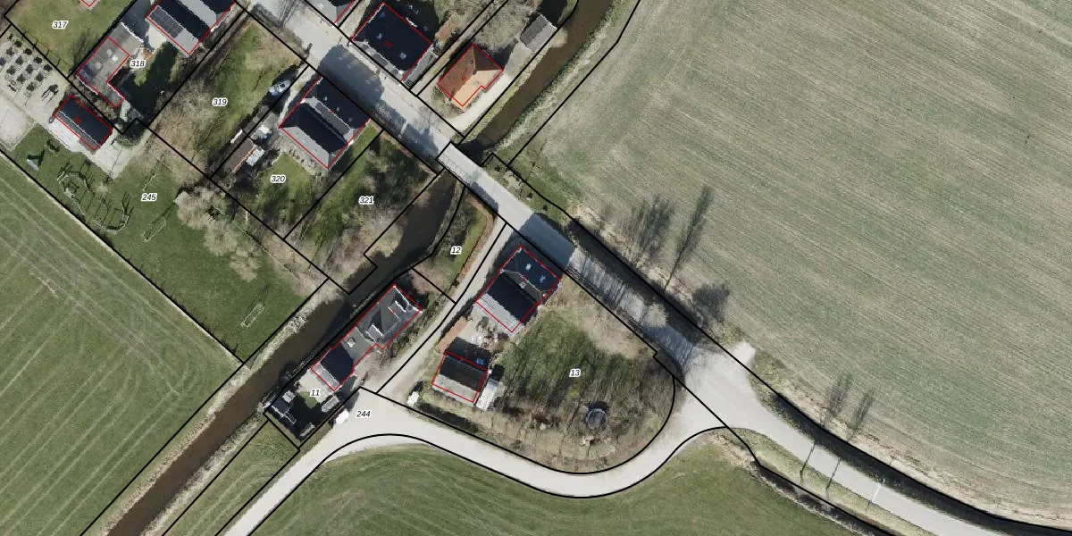 Het perceel waarop het adres ligt is BOE00-L-13. De afkorting 'BOE00' staat voor kadastrale gemeente ten Boer. Het perceel is kleiner dan gemiddeld in ten Boer. Het perceel is 1426 m² groot, terwijl het gemiddelde ligt op 8517,35 m². Het grootste perceel in de kadastrale gemeente is 36,2 ha. Het kleinste perceel heeft een oppervlakte van 0 m². Dit is het enige adres dat aanwezig is op het perceel. De huidige grenzen van het perceel zijn digitaal in de Basisregistratie Kadaster (BRK) geregistreerd op 14-11-1997.