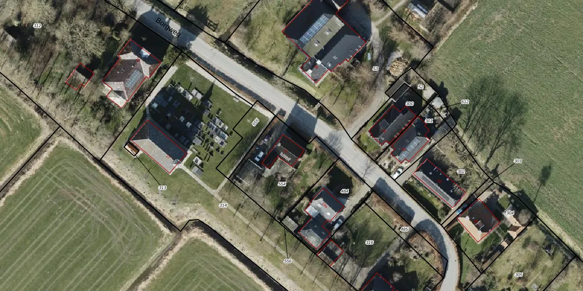 Borgweg 21 is gelegen op kadastraal perceel BOE00L554. Deze kadastrale aanduiding is uniek en wordt gebruikt door het Kadaster om eigendomsrechten en andere zakelijke rechten vast te leggen. Het perceel maakt onderdeel uit van de kadastrale gemeente ten Boer.
