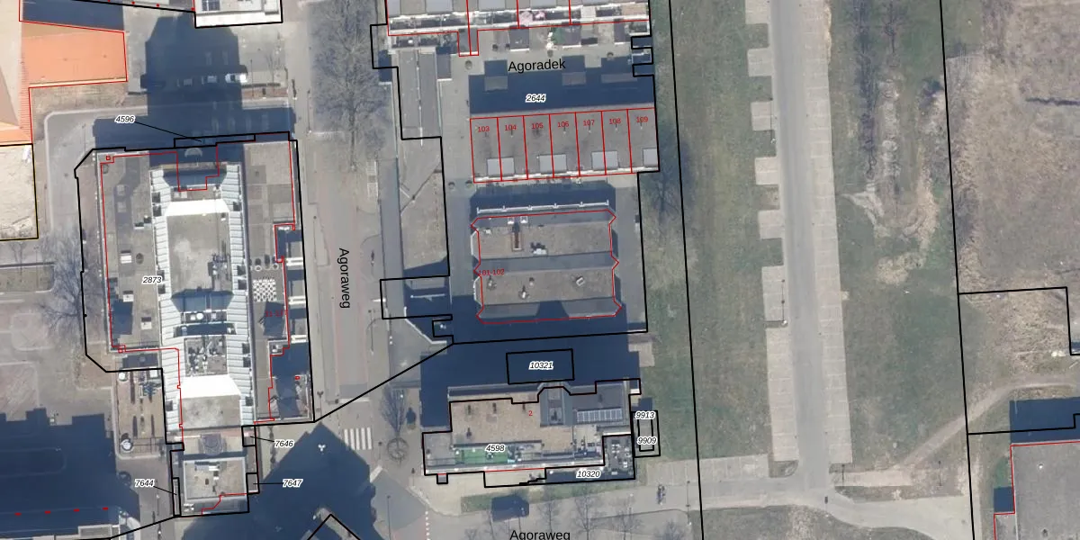 Het perceel waarop Agoradek 101 staat heeft een oppervlakte van 4624 m². Dit is een zeer groot perceel. De perceeloppervlakte wordt geregistreerd door het Kadaster. Gedetailleerde informatie over de maten van dit perceel kunt u vinden in het rapport Kadastrale kaart met maatvoering van Agoradek 101.
