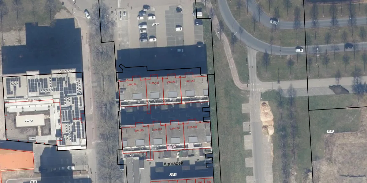 Het perceel waarop Agoradek 142 staat heeft een oppervlakte van 4624 m². Dit is een zeer groot perceel. De perceeloppervlakte wordt geregistreerd door het Kadaster. Gedetailleerde informatie over de maten van dit perceel kunt u vinden in het rapport Kadastrale kaart met maatvoering van Agoradek 142.