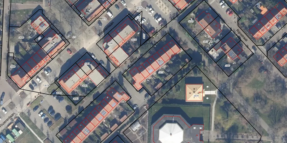 Het perceel waarop Amer 13 staat heeft een oppervlakte van 1036 m². Dit is een zeer groot perceel. De perceeloppervlakte wordt geregistreerd door het Kadaster. Gedetailleerde informatie over de maten van dit perceel kunt u vinden in het rapport Kadastrale kaart met maatvoering van Amer 13.