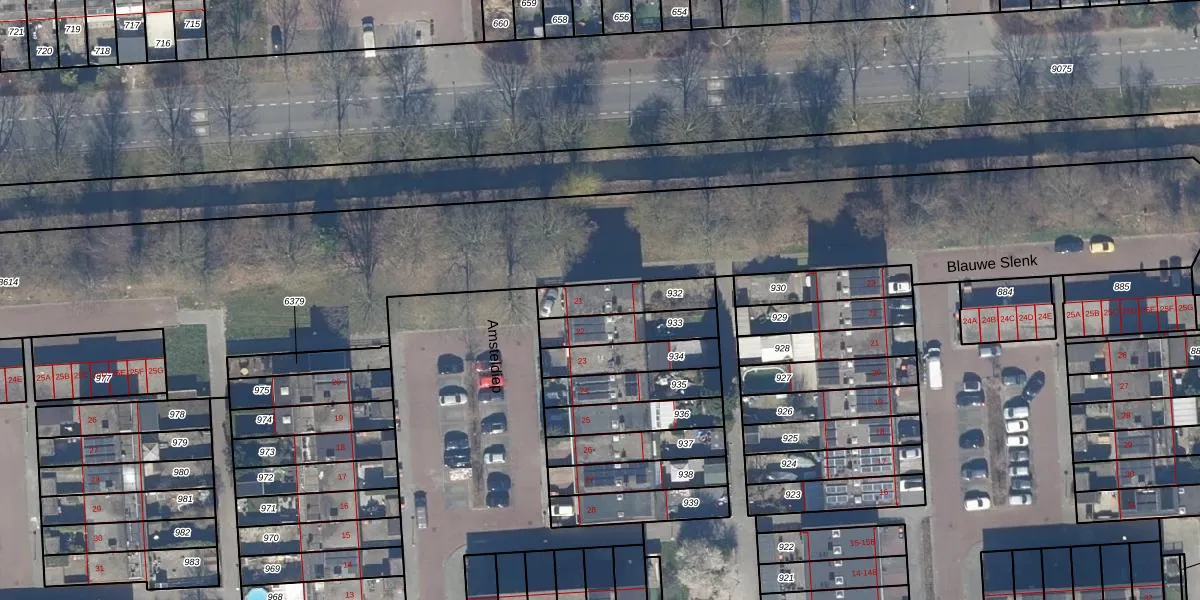 Gebruik de zoekbalk of klik op een perceel voor informatie over de adressen binnen dit perceel.