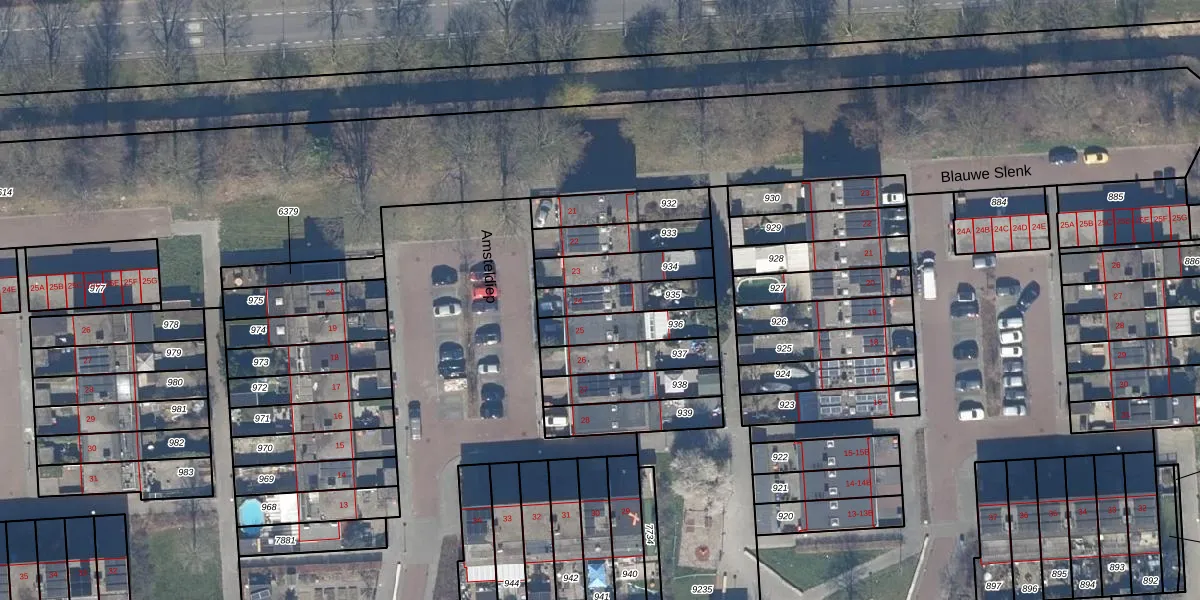 Gebruik de zoekbalk of klik op een perceel voor informatie over de adressen binnen dit perceel.