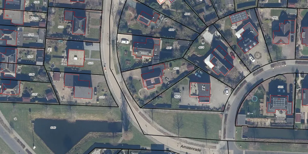 Het perceel waarop Amstenrade 6 staat heeft een oppervlakte van 800 m². Dit is een groot perceel. De perceeloppervlakte wordt geregistreerd door het Kadaster. Gedetailleerde informatie over de maten van dit perceel kunt u vinden in het rapport Kadastrale kaart met maatvoering van Amstenrade 6.