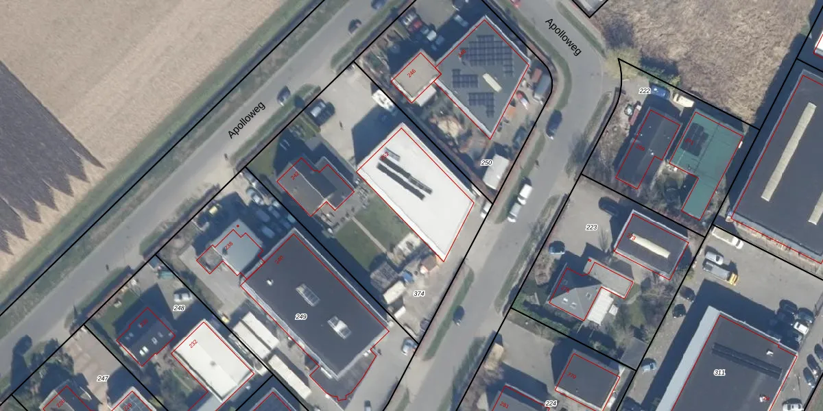 Het perceel waarop Apolloweg 252 staat heeft een oppervlakte van 2007 m². Dit is een zeer groot perceel. De perceeloppervlakte wordt geregistreerd door het Kadaster. Gedetailleerde informatie over de maten van dit perceel kunt u vinden in het rapport Kadastrale kaart met maatvoering van Apolloweg 252.