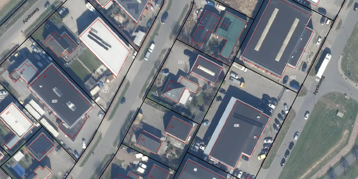 Apolloweg 275 is gelegen op kadastraal perceel LLS00B223. Deze kadastrale aanduiding is uniek en wordt gebruikt door het Kadaster om eigendomsrechten en andere zakelijke rechten vast te leggen. Het perceel maakt onderdeel uit van de kadastrale gemeente Lelystad.