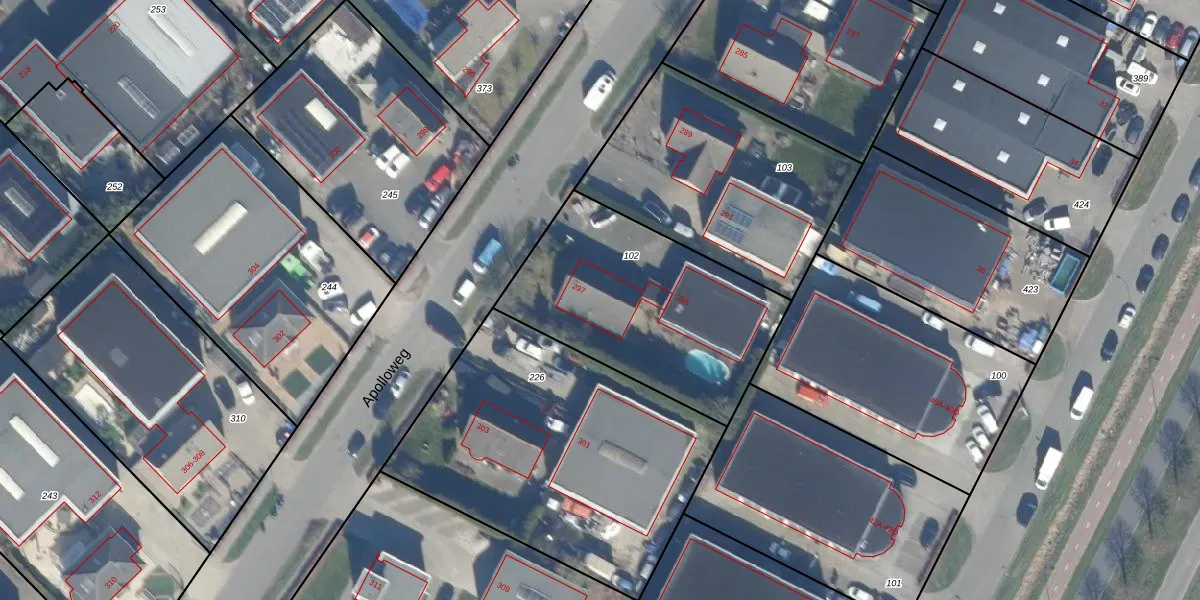 Apolloweg 297 is gelegen op kadastraal perceel LLS00B102. Deze kadastrale aanduiding is uniek en wordt gebruikt door het Kadaster om eigendomsrechten en andere zakelijke rechten vast te leggen. Het perceel maakt onderdeel uit van de kadastrale gemeente Lelystad.