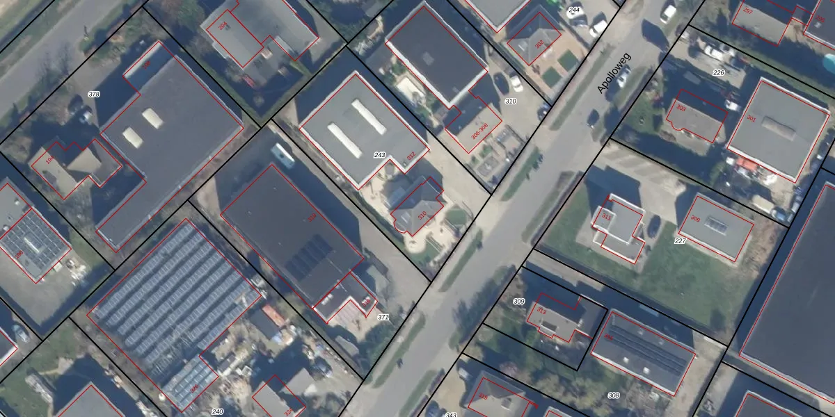 Apolloweg 310 is gelegen op kadastraal perceel LLS00B243. Deze kadastrale aanduiding is uniek en wordt gebruikt door het Kadaster om eigendomsrechten en andere zakelijke rechten vast te leggen. Het perceel maakt onderdeel uit van de kadastrale gemeente Lelystad.