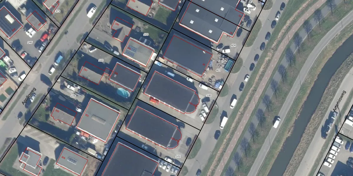 Het perceel waarop Apolloweg 40-D staat heeft een oppervlakte van 1002 m². Dit is een zeer groot perceel. De perceeloppervlakte wordt geregistreerd door het Kadaster. Gedetailleerde informatie over de maten van dit perceel kunt u vinden in het rapport Kadastrale kaart met maatvoering van Apolloweg 40-D.