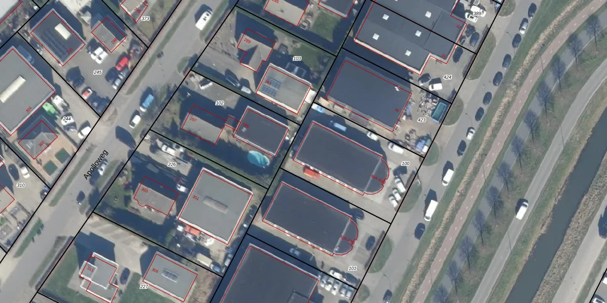 Het perceel waarop Apolloweg 40-H staat heeft een oppervlakte van 1002 m². Dit is een zeer groot perceel. De perceeloppervlakte wordt geregistreerd door het Kadaster. Gedetailleerde informatie over de maten van dit perceel kunt u vinden in het rapport Kadastrale kaart met maatvoering van Apolloweg 40-H.