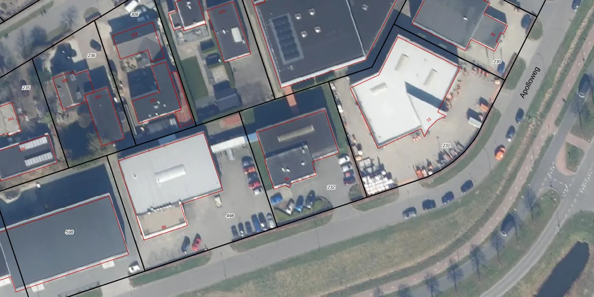Het perceel waarop Apolloweg 80 staat heeft een oppervlakte van 1307 m². Dit is een zeer groot perceel. De perceeloppervlakte wordt geregistreerd door het Kadaster. Gedetailleerde informatie over de maten van dit perceel kunt u vinden in het rapport Kadastrale kaart met maatvoering van Apolloweg 80.