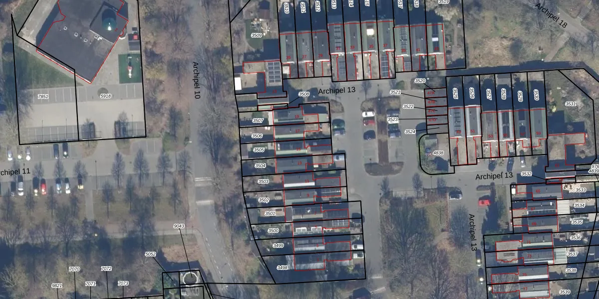 Het perceel waarop Archipel 13 15 staat heeft een oppervlakte van 165 m². Dit is een middelgroot perceel. De perceeloppervlakte wordt geregistreerd door het Kadaster. Gedetailleerde informatie over de maten van dit perceel kunt u vinden in het rapport Kadastrale kaart met maatvoering van Archipel 13 15.