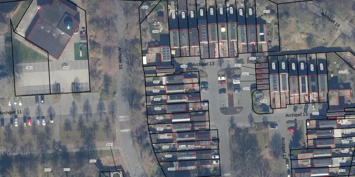 Gebruik de zoekbalk of klik op een perceel voor informatie over de adressen binnen dit perceel.
