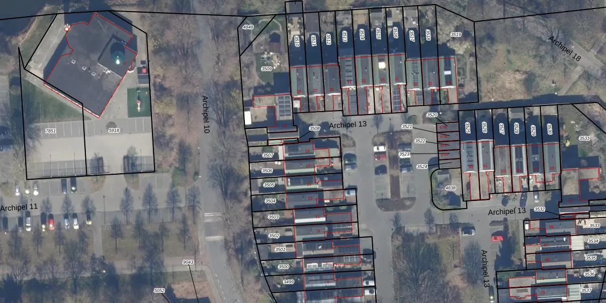 Gebruik de zoekbalk of klik op een perceel voor informatie over de adressen binnen dit perceel.