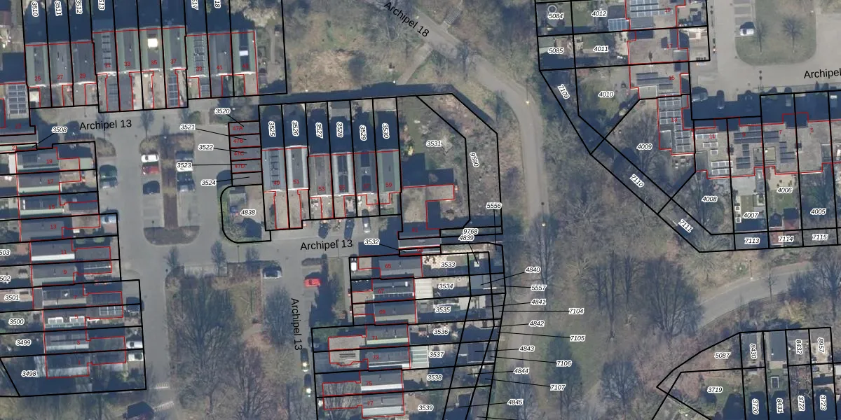 Gebruik de zoekbalk of klik op een perceel voor informatie over de adressen binnen dit perceel.