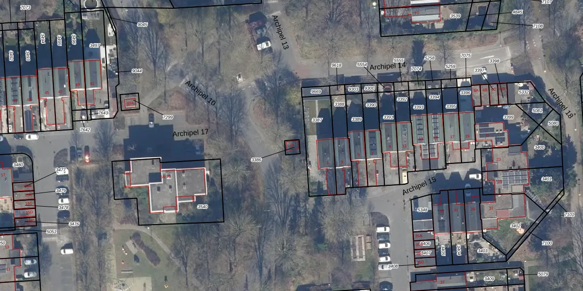 Het perceel waarop Archipel 15 1-T staat heeft een oppervlakte van 24 m². Dit is een klein perceel. De perceeloppervlakte wordt geregistreerd door het Kadaster. Gedetailleerde informatie over de maten van dit perceel kunt u vinden in het rapport Kadastrale kaart met maatvoering van Archipel 15 1-T.