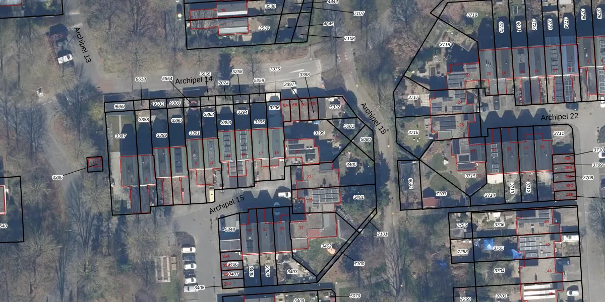 Het perceel waarop Archipel 15 21 staat heeft een oppervlakte van 285 m². Dit is een middelgroot perceel. De perceeloppervlakte wordt geregistreerd door het Kadaster. Gedetailleerde informatie over de maten van dit perceel kunt u vinden in het rapport Kadastrale kaart met maatvoering van Archipel 15 21.