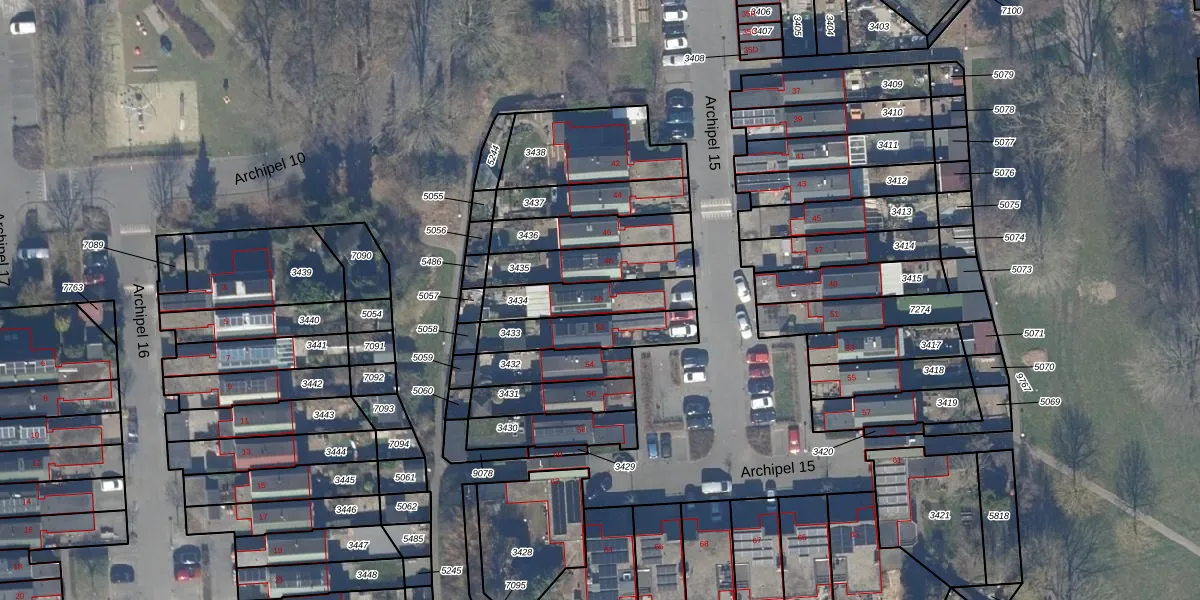 Het perceel waarop Archipel 15 50 staat heeft een oppervlakte van 196 m². Dit is een middelgroot perceel. De perceeloppervlakte wordt geregistreerd door het Kadaster. Gedetailleerde informatie over de maten van dit perceel kunt u vinden in het rapport Kadastrale kaart met maatvoering van Archipel 15 50.