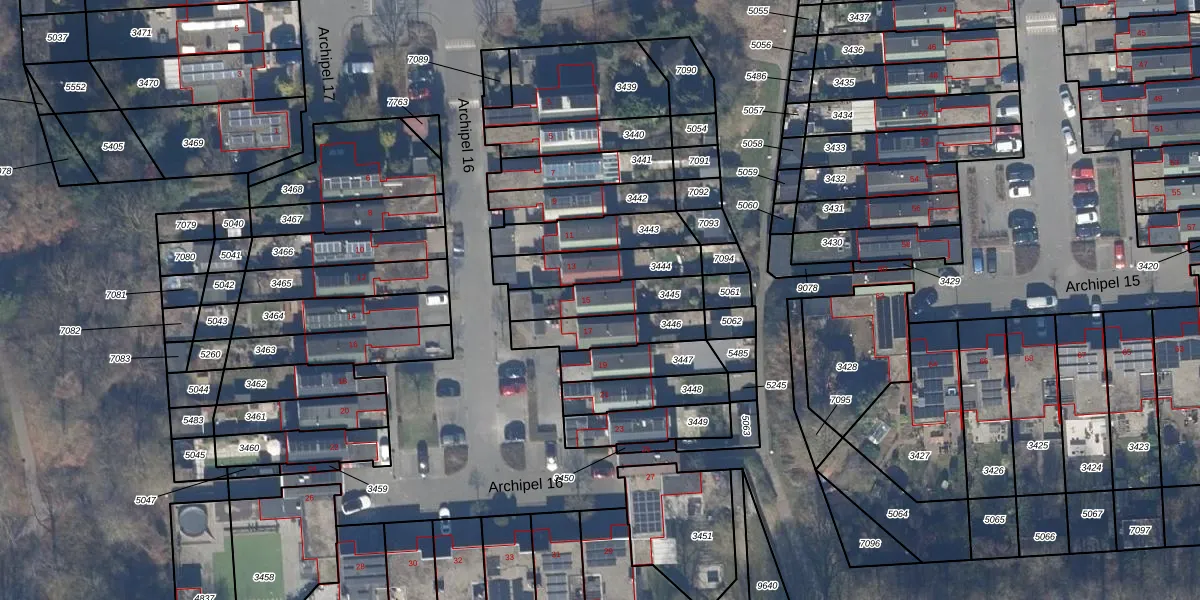 Het perceel waarop Archipel 16 15 staat heeft een oppervlakte van 179 m². Dit is een middelgroot perceel. De perceeloppervlakte wordt geregistreerd door het Kadaster. Gedetailleerde informatie over de maten van dit perceel kunt u vinden in het rapport Kadastrale kaart met maatvoering van Archipel 16 15.