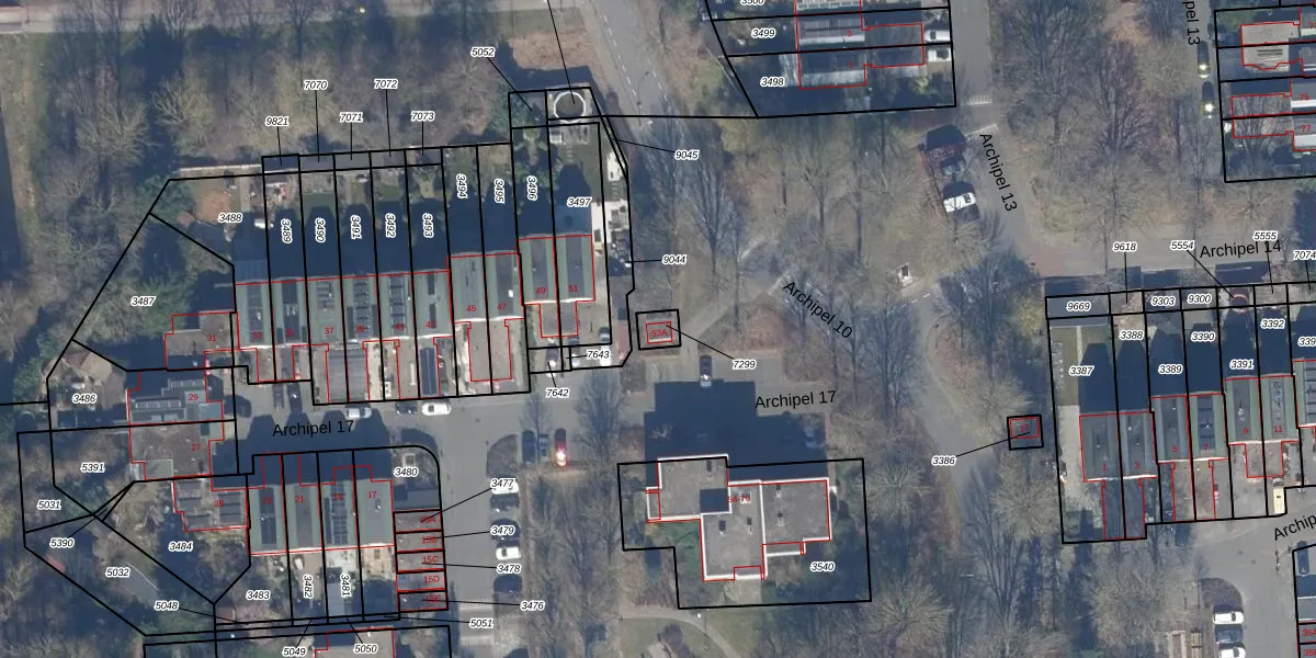 Gebruik de zoekbalk of klik op een perceel voor informatie over de adressen binnen dit perceel.