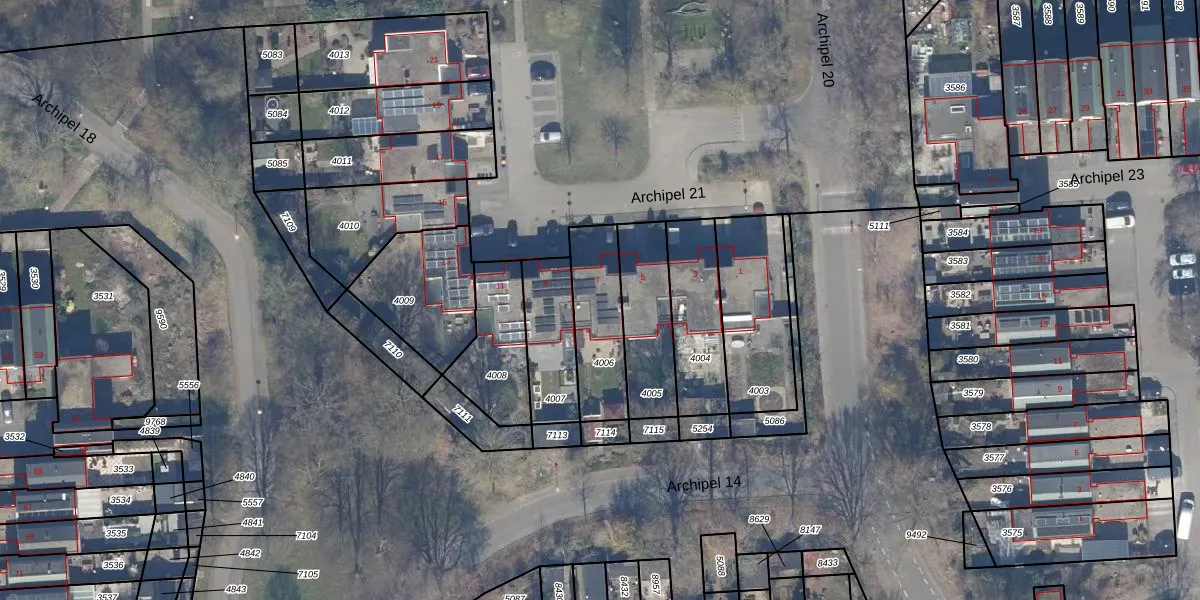Gebruik de zoekbalk of klik op een perceel voor informatie over de adressen binnen dit perceel.