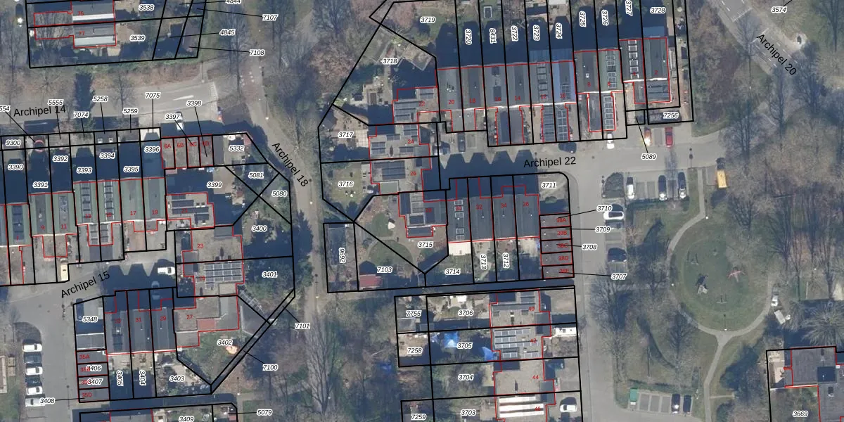 Gebruik de zoekbalk of klik op een perceel voor informatie over de adressen binnen dit perceel.