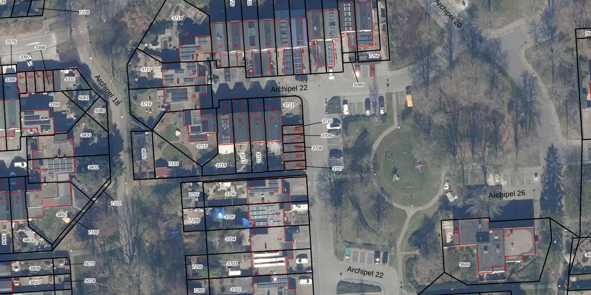 Gebruik de zoekbalk of klik op een perceel voor informatie over de adressen binnen dit perceel.