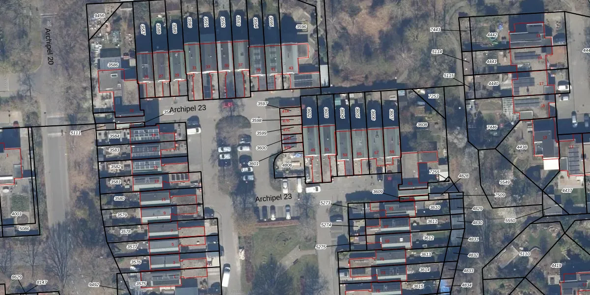 Het perceel waarop Archipel 23 47-E staat heeft een oppervlakte van 22 m². Dit is een klein perceel. De perceeloppervlakte wordt geregistreerd door het Kadaster. Gedetailleerde informatie over de maten van dit perceel kunt u vinden in het rapport Kadastrale kaart met maatvoering van Archipel 23 47-E.