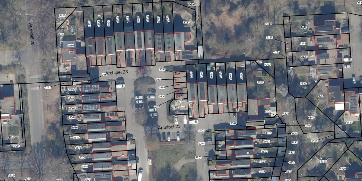 Het perceel waarop Archipel 23 47-D staat heeft een oppervlakte van 22 m². Dit is een klein perceel. De perceeloppervlakte wordt geregistreerd door het Kadaster. Gedetailleerde informatie over de maten van dit perceel kunt u vinden in het rapport Kadastrale kaart met maatvoering van Archipel 23 47-D.