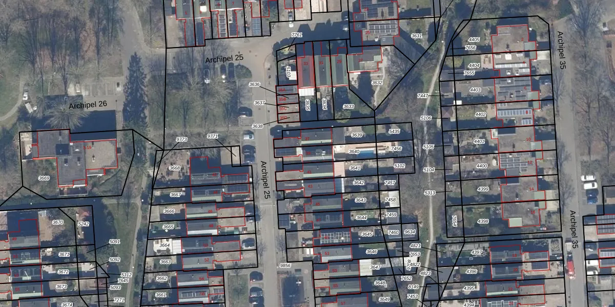 Het perceel waarop Archipel 25 39 staat heeft een oppervlakte van 173 m². Dit is een middelgroot perceel. De perceeloppervlakte wordt geregistreerd door het Kadaster. Gedetailleerde informatie over de maten van dit perceel kunt u vinden in het rapport Kadastrale kaart met maatvoering van Archipel 25 39.
