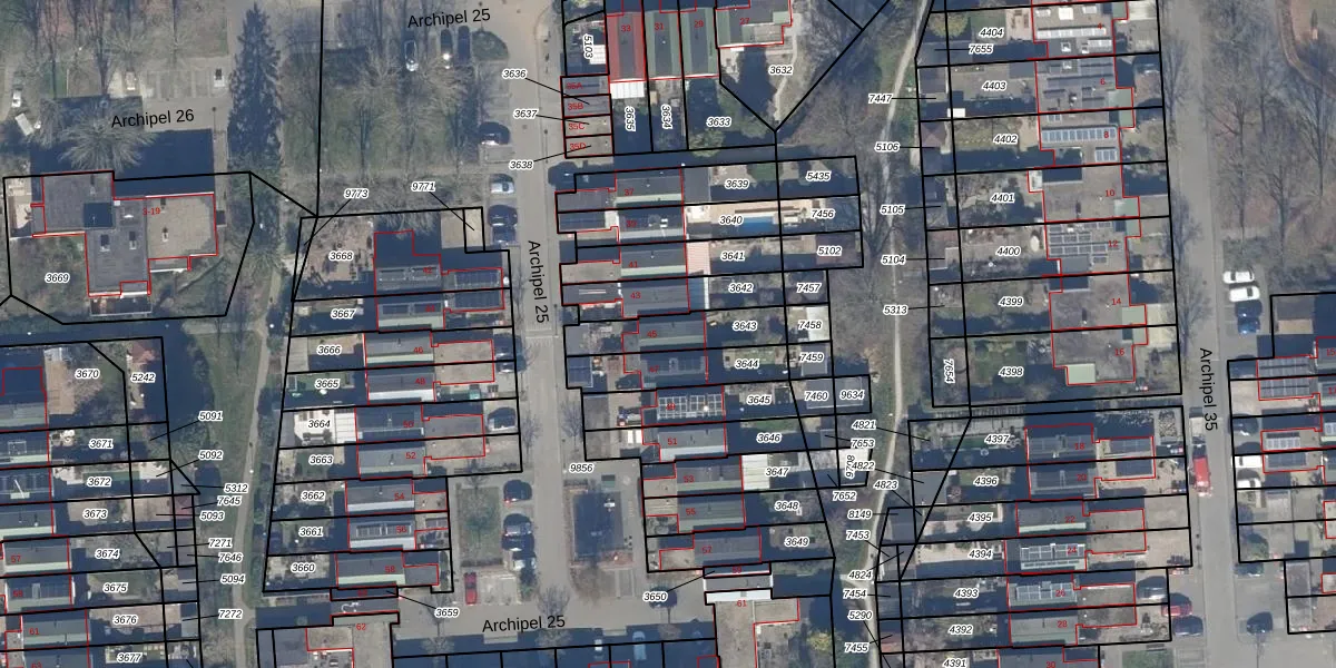 Het perceel waarop Archipel 25 45 staat heeft een oppervlakte van 180 m². Dit is een middelgroot perceel. De perceeloppervlakte wordt geregistreerd door het Kadaster. Gedetailleerde informatie over de maten van dit perceel kunt u vinden in het rapport Kadastrale kaart met maatvoering van Archipel 25 45.