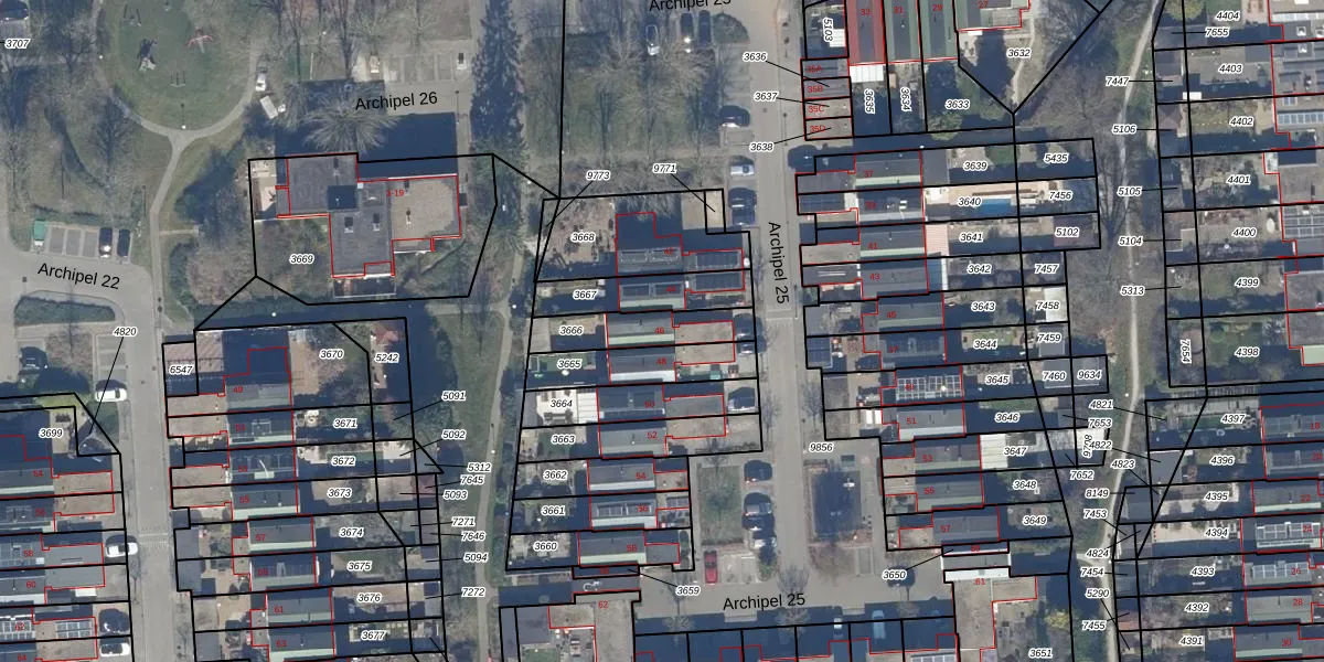 Het perceel waarop Archipel 25 46 staat heeft een oppervlakte van 183 m². Dit is een middelgroot perceel. De perceeloppervlakte wordt geregistreerd door het Kadaster. Gedetailleerde informatie over de maten van dit perceel kunt u vinden in het rapport Kadastrale kaart met maatvoering van Archipel 25 46.