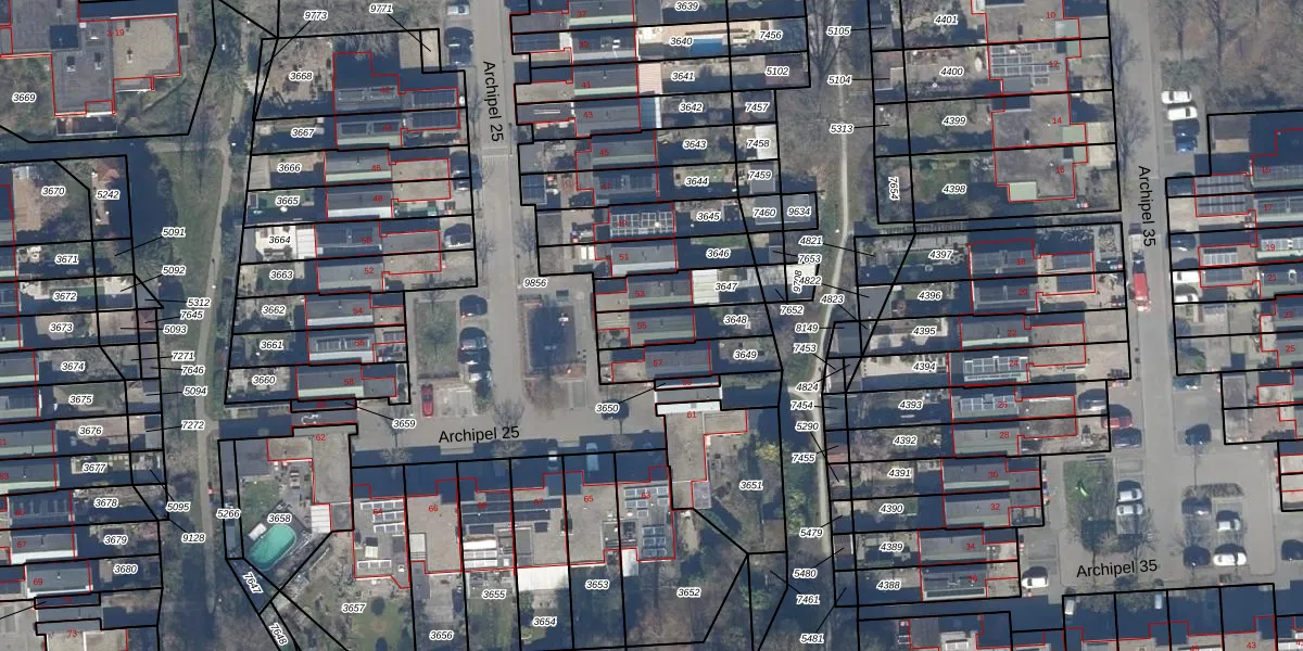 Het perceel waarop Archipel 25 55 staat heeft een oppervlakte van 141 m². Dit is een middelgroot perceel. De perceeloppervlakte wordt geregistreerd door het Kadaster. Gedetailleerde informatie over de maten van dit perceel kunt u vinden in het rapport Kadastrale kaart met maatvoering van Archipel 25 55.