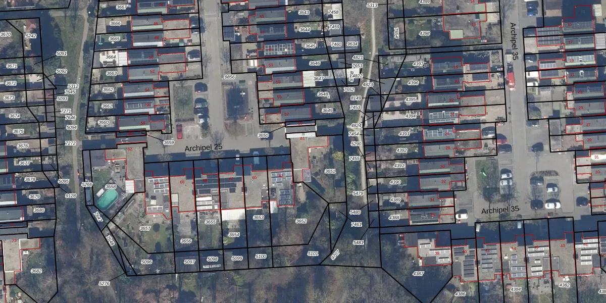 Het perceel waarop Archipel 25 61 staat heeft een oppervlakte van 349 m². Dit is een groot perceel. De perceeloppervlakte wordt geregistreerd door het Kadaster. Gedetailleerde informatie over de maten van dit perceel kunt u vinden in het rapport Kadastrale kaart met maatvoering van Archipel 25 61.