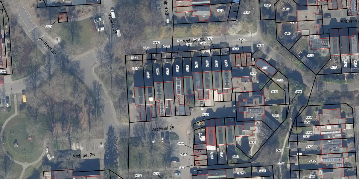 Het perceel waarop Archipel 25 9 staat heeft een oppervlakte van 179 m². Dit is een middelgroot perceel. De perceeloppervlakte wordt geregistreerd door het Kadaster. Gedetailleerde informatie over de maten van dit perceel kunt u vinden in het rapport Kadastrale kaart met maatvoering van Archipel 25 9.