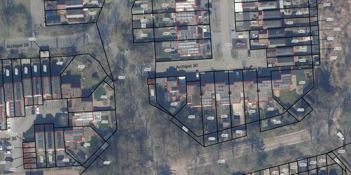 Gebruik de zoekbalk of klik op een perceel voor informatie over de adressen binnen dit perceel.