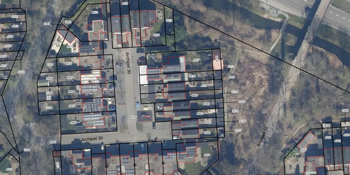 Gebruik de zoekbalk of klik op een perceel voor informatie over de adressen binnen dit perceel.
