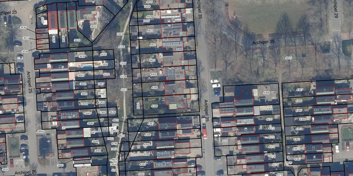 Het perceel waarop Archipel 35 14 staat heeft een oppervlakte van 257 m². Dit is een middelgroot perceel. De perceeloppervlakte wordt geregistreerd door het Kadaster. Gedetailleerde informatie over de maten van dit perceel kunt u vinden in het rapport Kadastrale kaart met maatvoering van Archipel 35 14.