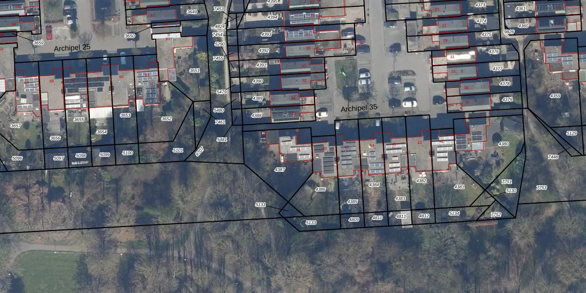 Het perceel waarop Archipel 35 38 staat heeft een oppervlakte van 440 m². Dit is een groot perceel. De perceeloppervlakte wordt geregistreerd door het Kadaster. Gedetailleerde informatie over de maten van dit perceel kunt u vinden in het rapport Kadastrale kaart met maatvoering van Archipel 35 38.