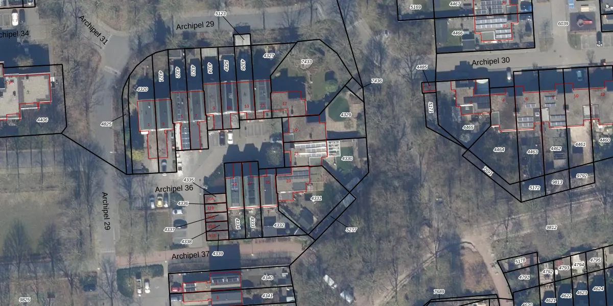 Het perceel waarop Archipel 36 21 staat heeft een oppervlakte van 306 m². Dit is een groot perceel. De perceeloppervlakte wordt geregistreerd door het Kadaster. Gedetailleerde informatie over de maten van dit perceel kunt u vinden in het rapport Kadastrale kaart met maatvoering van Archipel 36 21.