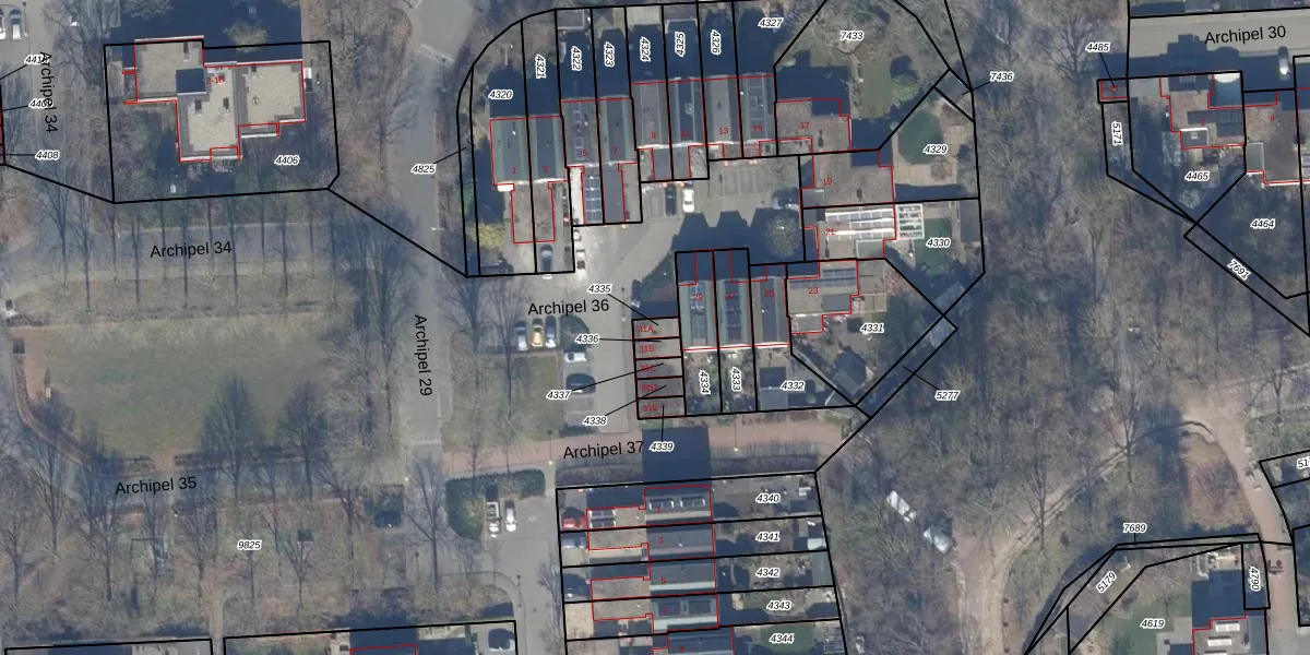 Het perceel waarop Archipel 36 31-A staat heeft een oppervlakte van 22 m². Dit is een klein perceel. De perceeloppervlakte wordt geregistreerd door het Kadaster. Gedetailleerde informatie over de maten van dit perceel kunt u vinden in het rapport Kadastrale kaart met maatvoering van Archipel 36 31-A.