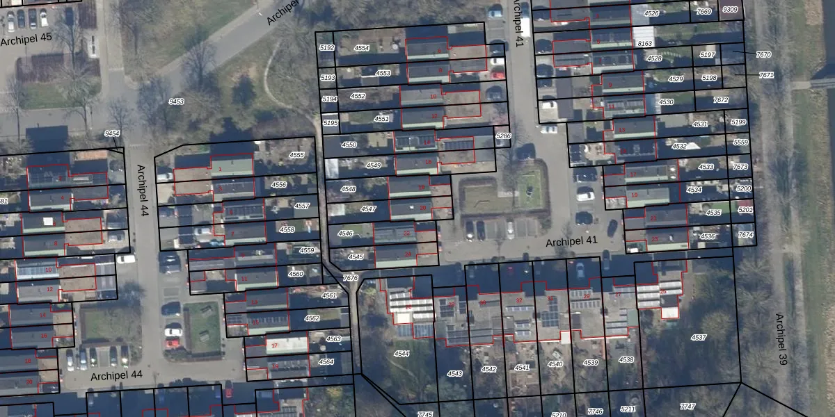 Het perceel waarop Archipel 41 20 staat heeft een oppervlakte van 161 m². Dit is een middelgroot perceel. De perceeloppervlakte wordt geregistreerd door het Kadaster. Gedetailleerde informatie over de maten van dit perceel kunt u vinden in het rapport Kadastrale kaart met maatvoering van Archipel 41 20.