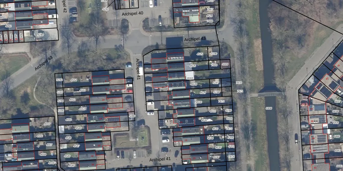 Het perceel waarop Archipel 41 7 staat heeft een oppervlakte van 205 m². Dit is een middelgroot perceel. De perceeloppervlakte wordt geregistreerd door het Kadaster. Gedetailleerde informatie over de maten van dit perceel kunt u vinden in het rapport Kadastrale kaart met maatvoering van Archipel 41 7.