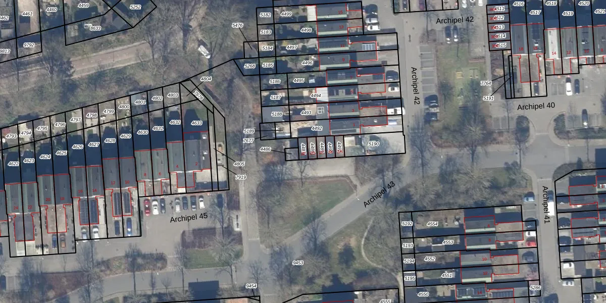 Het perceel waarop Archipel 43 2-E staat heeft een oppervlakte van 22 m². Dit is een klein perceel. De perceeloppervlakte wordt geregistreerd door het Kadaster. Gedetailleerde informatie over de maten van dit perceel kunt u vinden in het rapport Kadastrale kaart met maatvoering van Archipel 43 2-E.