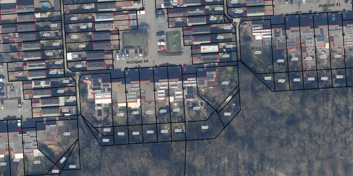 Gebruik de zoekbalk of klik op een perceel voor informatie over de adressen binnen dit perceel.